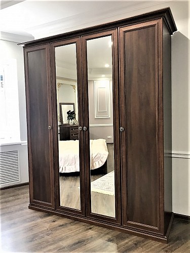 Шкаф 4-х дв.1,89 (штанга/полки) "Таис" (МДФ) (Орех караваджо/Патина/Лак/Зеркало) UgAf