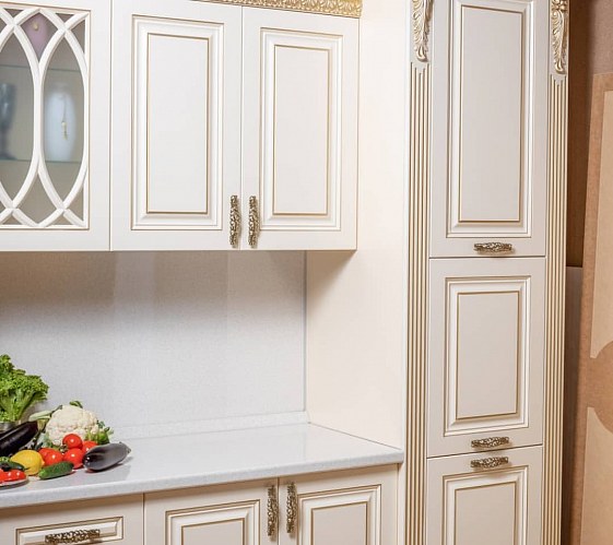 Роскошная коллекция Изабелла в современном классическом стиле. Для ее изготовления использованы износостойкие материалы, которым не страшен близкий контакт с водой, продуктами и грязью. Все рабочие и декоративные поверхности надолго сохранят свой опрятный внешний вид. Серия состоит из отдельных функциональных блоков (верх+низ), которые можно объединять в комплект. Фасады толщиной 19 мм покрыты светло-бежевым водостойким итальянским лаком и элегантно украшены фактурной резьбой с золотистой патиной Renner. Фигурные ручки и изысканный декор подчеркивают презентабельность и выраженный аристократических дух гарнитура.