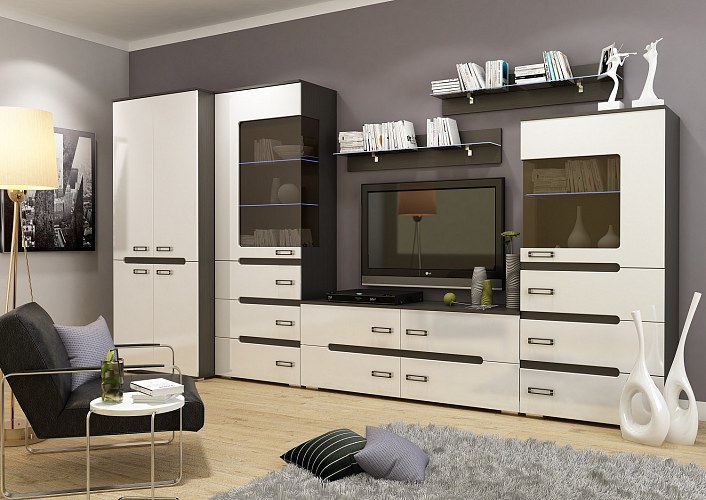 Спальный гарнитур 8 предм. подъемн.мех."Алисия" (МДФ) (Венге/Белый глянец) /Gnt/Вгс2