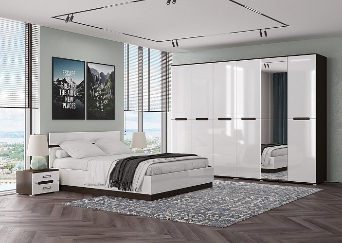 Спальный гарнитур 6 предм. 1,6/3Д/1Д/2Д "Алисия" (МДФ) (Венге/Белый глянец) /Gnt/Вгс6