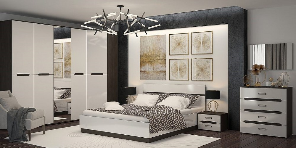 Спальный гарнитур 6 предм. подъемн.мех."Алисия" (МДФ) (Венге/Белый глянец) /Gnt/Вгс1