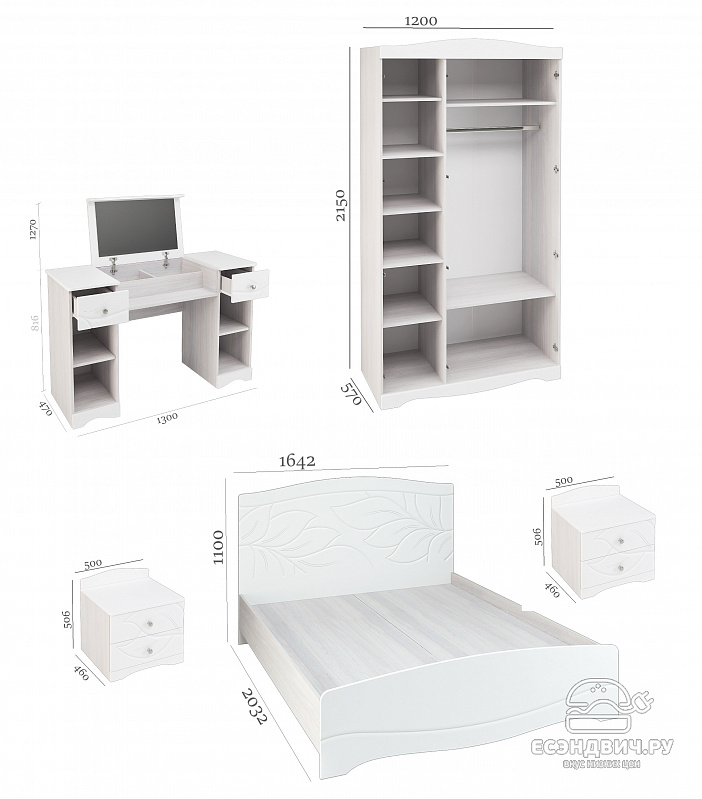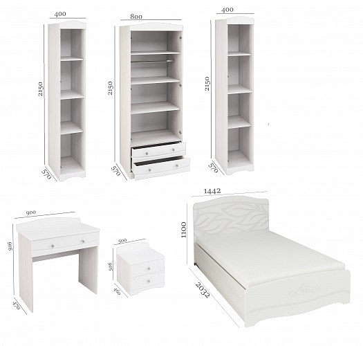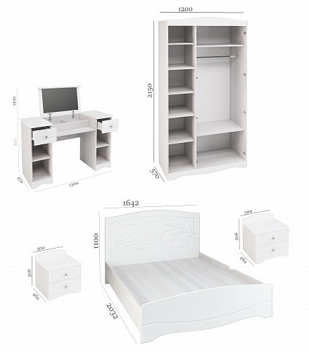 Длительное комфортное использование обеспечено качественными материалами и фурнитурой. Ящики на шариковых направляющих полного выдвижения. Косметический стол имеет подъемное зеркало.