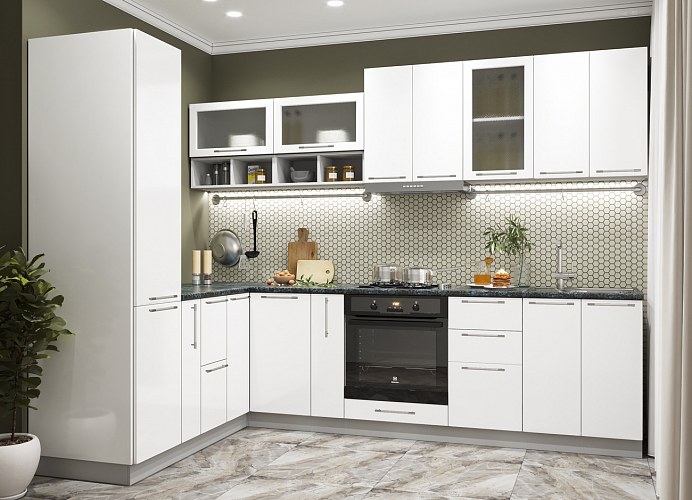 Коллекция "Лакрима" металлик отличается фасадами МДФ без фрезеровки (гладкие) с характерными для металлика блестящими светоотражающими вкраплениями. Разнообразие модулей и цветовых решений, позволяет скомплектовать кухню в размер, с идеальным наполнением и дизайном. В коллекции есть высокие (90см) навесные шкафы, которые увеличивают вместимость и придают кухне современный эффектный дизайн. Высоту можно нарастить горизонтальными шкафами (35см и 45см). Корпус ЛДСП Серый, Фасады МДФ Металлик, Стекло Крезет, Ручка скоба, Тумбы комплектуются столешницей "Антарес" в размер тумбы. Тумбы под мойку накладную поставляются без столешниц.