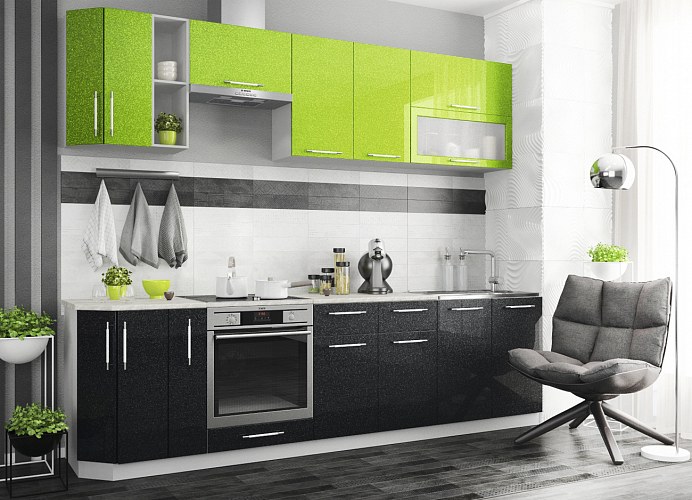 Коллекция "Лакрима" металлик отличается фасадами МДФ без фрезеровки (гладкие) с характерными для металлика блестящими светоотражающими вкраплениями. Разнообразие модулей и цветовых решений, позволяет скомплектовать кухню в размер, с идеальным наполнением и дизайном. В коллекции есть высокие (90см) навесные шкафы, которые увеличивают вместимость и придают кухне современный эффектный дизайн. Высоту можно нарастить горизонтальными шкафами (35см и 45см). Корпус ЛДСП Серый, Фасады МДФ Металлик, Стекло Крезет, Ручка скоба, Тумбы комплектуются столешницей "Антарес" в размер тумбы. Тумбы под мойку накладную поставляются без столешниц.