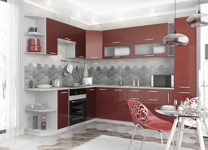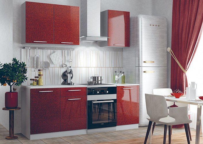 Коллекция "Лакрима" металлик отличается фасадами МДФ без фрезеровки (гладкие) с характерными для металлика блестящими светоотражающими вкраплениями. Разнообразие модулей и цветовых решений, позволяет скомплектовать кухню в размер, с идеальным наполнением и дизайном. В коллекции есть высокие (90см) навесные шкафы, которые увеличивают вместимость и придают кухне современный эффектный дизайн. Высоту можно нарастить горизонтальными шкафами (35см и 45см). Корпус ЛДСП Серый, Фасады МДФ Металлик, Стекло Крезет, Ручка скоба, Тумбы комплектуются столешницей "Антарес" в размер тумбы. Тумбы под мойку накладную поставляются без столешниц.