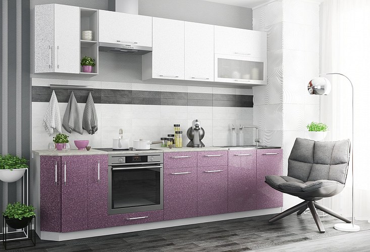 Коллекция "Лакрима" металлик отличается фасадами МДФ без фрезеровки (гладкие) с характерными для металлика блестящими светоотражающими вкраплениями. Разнообразие модулей и цветовых решений, позволяет скомплектовать кухню в размер, с идеальным наполнением и дизайном. В коллекции есть высокие (90см) навесные шкафы, которые увеличивают вместимость и придают кухне современный эффектный дизайн. Высоту можно нарастить горизонтальными шкафами (35см и 45см). Корпус ЛДСП Серый, Фасады МДФ Металлик, Стекло Крезет, Ручка скоба, Тумбы комплектуются столешницей "Антарес" в размер тумбы. Тумбы под мойку накладную поставляются без столешниц.