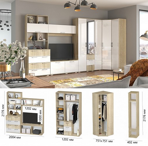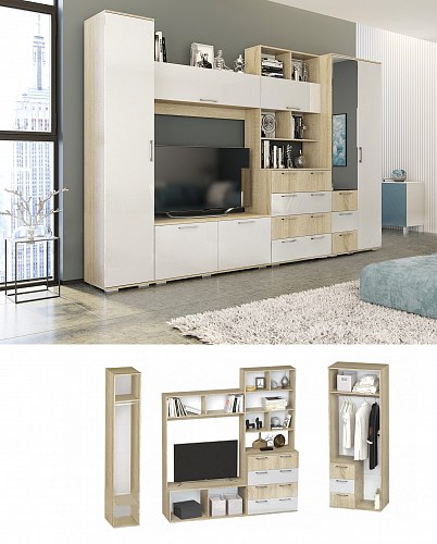 Коллекция Мальта (ЛДСП UF Лак/Дуб сонома/Белый глянец) )