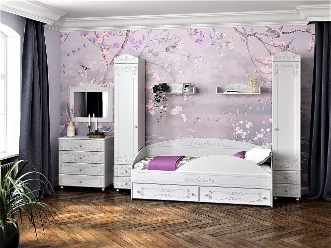 Римини - изящная и утонченная коллекция с элегантным вензелем. Продуманная до мелочей. Регулируемые опоры, мебель встанет идеально ровно. Петли с доводчиком, бесшумное закрывание. Направляющие полного выдвижения. Надежные металлические крючки на вешалках. Широкая гамма размерностей кроватей, подойдет детям и взрослым. К кроватям дополнительно можно приобрести мягкие элементы изголовья. Все шкафы стыкуются по размеру без щелей. Высота всех шкафов 2124мм, глубины 2: 432мм и 582мм. Можно создать шкафную группу любой величины, добавляя шкафы друг к другу. Большой модульный ряд позволяет обставить всю жилплощадь в едином стиле: прихожие, спальни, гостиные, детские. Актуальный белый цвет. Отличная цена. Короткие сроки поставки.