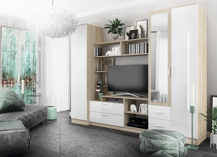 Коллекция Селин (Дуб Сонома/Белый глянец)