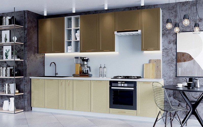 Кухня Йорк в цветах Олива или Лунный свет великолепно впишется в интерьер в стиле хай-тек.