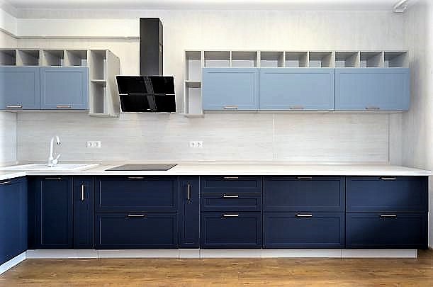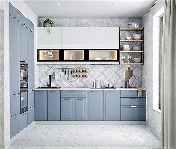 Высокие (90см) шкафы придают современный дизайн кухне и увеличивают полезную площадь хранения.
