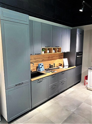 Новинка! Торцевые фасады для облицовки боковых стенок. Видимые боковые стенки корпуса ЛДСП можно облагородить фасадом МДФ в цвет всей кухни. Палитра торцевых фасадов такая же, как и для всех модулей серии Йорк. Фасады для облицовки торцов предусмотрены для всех модулей: навесных шкафов (высотой 35,45,70,90см), тумб, антресолей, пеналов. Такой фасад, к примеру, позволит организовать кухонный остров из модулей тумб.
