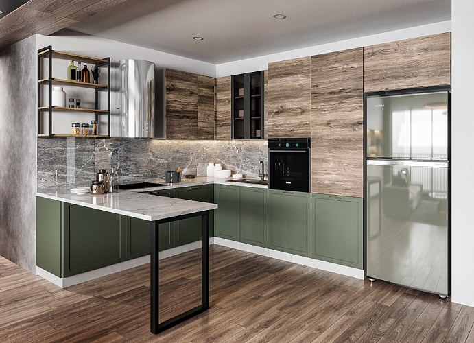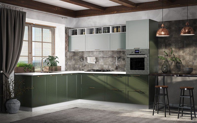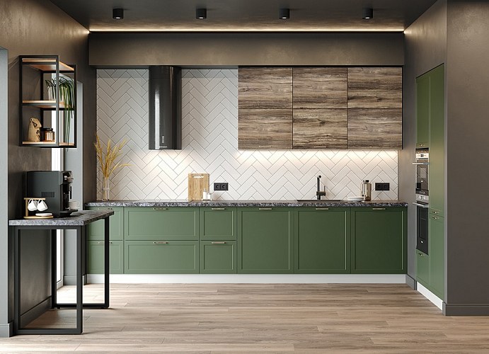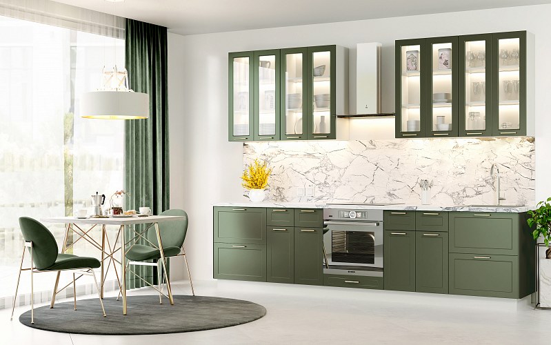 Кухня Йорк в цветах Олива или Лунный свет великолепно впишется в интерьер в стиле хай-тек.