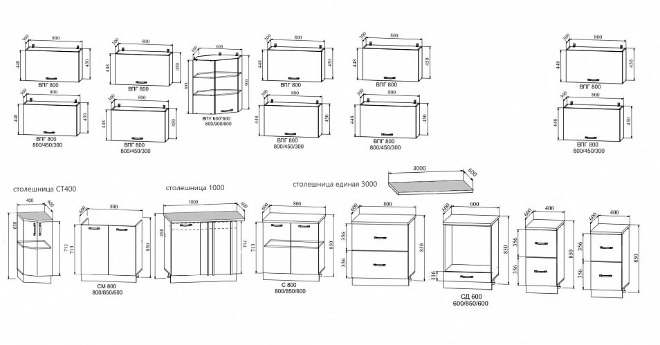 Мы поможем с подбором модулей для вашей кухни. Напишите нам: размер кухонного гарнитура, плита отдельная/встроенный дух.шкаф, мойка накладная/врезная и пожелания к модулям.