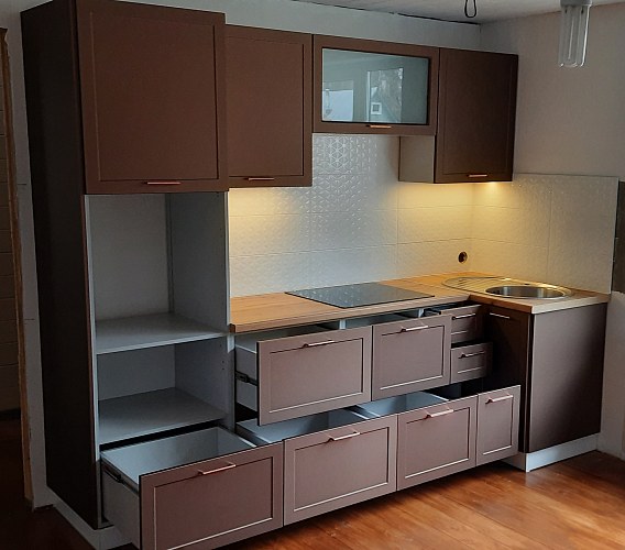 Мы поможем с подбором модулей для вашей кухни. Напишите нам: размер кухонного гарнитура, плита отдельная/встроенный дух.шкаф, мойка накладная/врезная и пожелания к модулям.