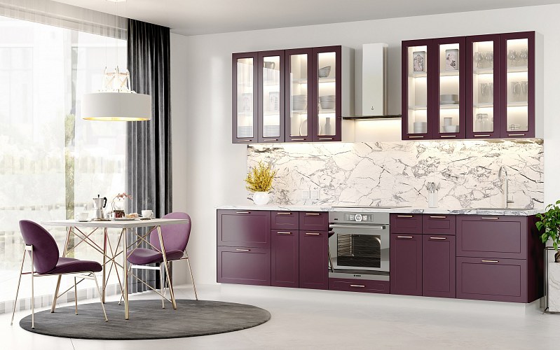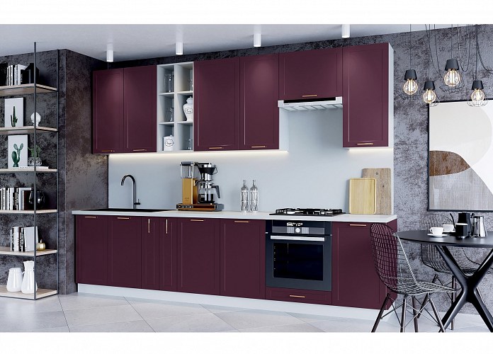 Модули с фасадами глубоких насыщенных оттенков Античное золото, Шоколад, Черника легко вольется в модерновую симфонию чистых линий, лаконичных форм и ярких цветовых акцентов.