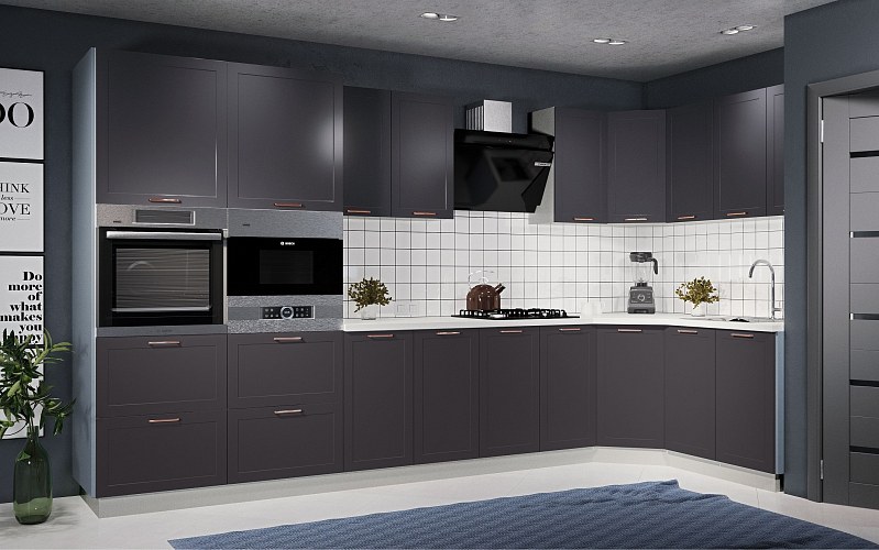 Модули с фасадами глубоких насыщенных оттенков Античное золото, Шоколад, Черника легко вольется в модерновую симфонию чистых линий, лаконичных форм и ярких цветовых акцентов.