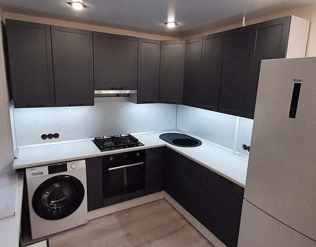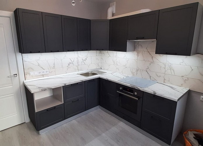 Высокие (90см) шкафы придают современный дизайн кухне и увеличивают полезную площадь хранения.