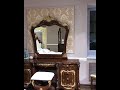 | Материал | Трёхслойное покрытие экологически чистого итальянского водоразбавляемого матового лака. Декоративные элементы мебели - на основе жесткого пенополиуретана и компактного полиуретана с последующей имитацией древесины. Эта инновация в мебельной промышленности позволяет идеально моделировать натуральную деревянную резьбу и накладные украшения. Изящные радиусные фасады украшены затейливыми рисунками, выполненными методом шелкографии. |