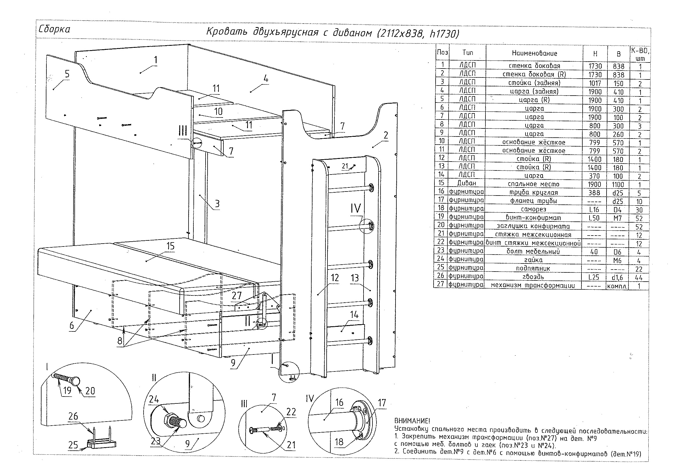 | Доп.информация | Произведено на высокотехнологичном оборудовании. Поставляется в разобранном виде в запечатанной заводской упаковке. Требуется сборка. Набор фурнитуры и инструкция по сборке в комплекте. |