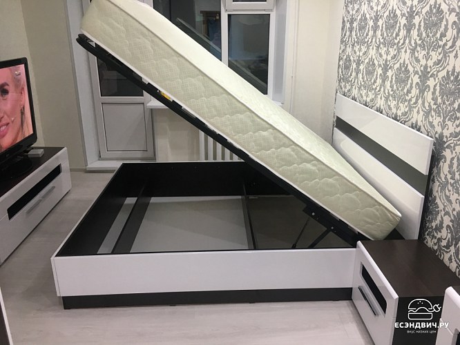 Кровать 1600с подъёмн.мех-м "Алисия" (МДФ) (Венге/Белый глянец) /Gnt/Вгс