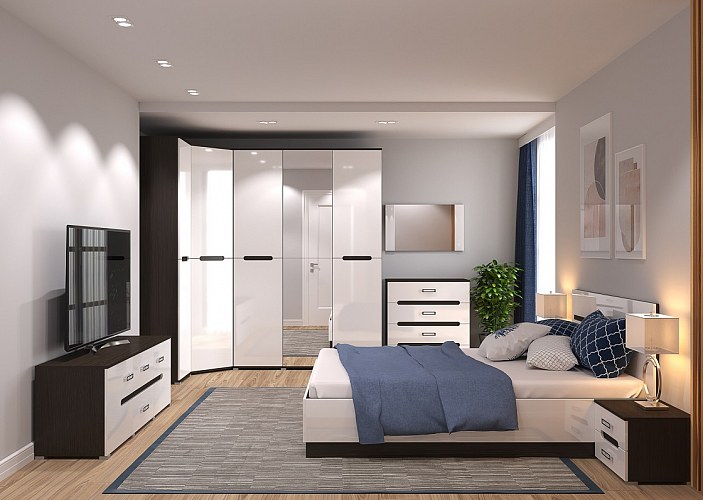 Спальный гарнитур 7предм. 1,6/1Д/2Д "Алисия" (МДФ) (Венге/Белый глянец) /Gnt/Вгс4