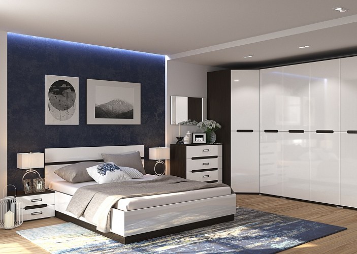 Спальный гарнитур 8 предм. подъемн.мех."Алисия" (МДФ) (Венге/Белый глянец) /Gnt/Вгс2