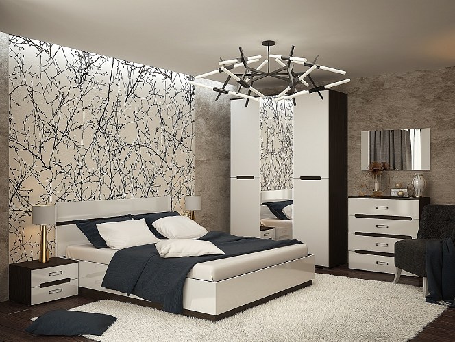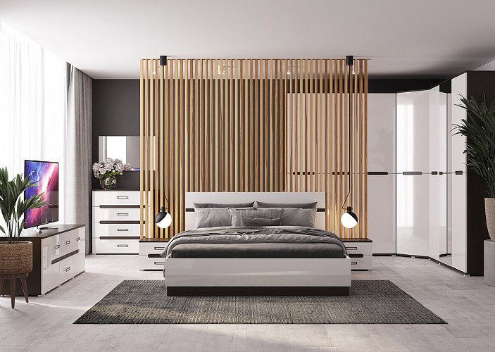 Спальный гарнитур 6 предм. подъемн.мех."Алисия" (МДФ) (Венге/Белый глянец) /Gnt/Вгс1
