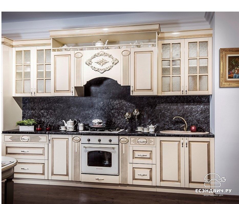 Шкаф 800 с посудосуш."Маэстро" (МДФ) (Крем глянец/Патина/Лак/Стекло) UgVr
