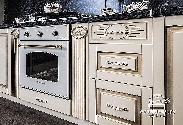 Тумба 900 под встр.духовку "Маэстро" (МДФ) (Крем глянец/Патина/Лак) UgVr