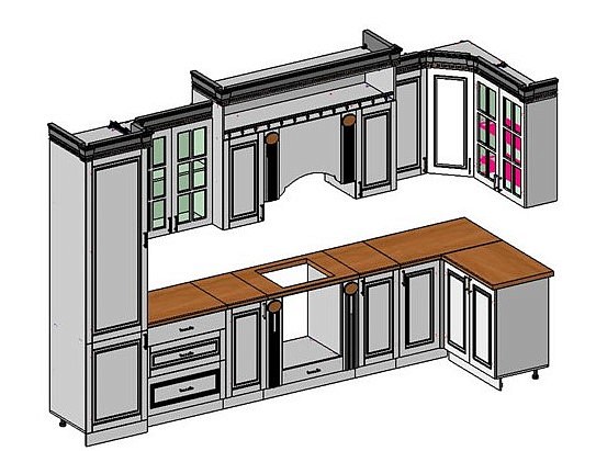 Кухня угловая 4,1х1,4 (универс.угол) "Маэстро" (МДФ) (Крем глянец/Патина/Лак) UgVr