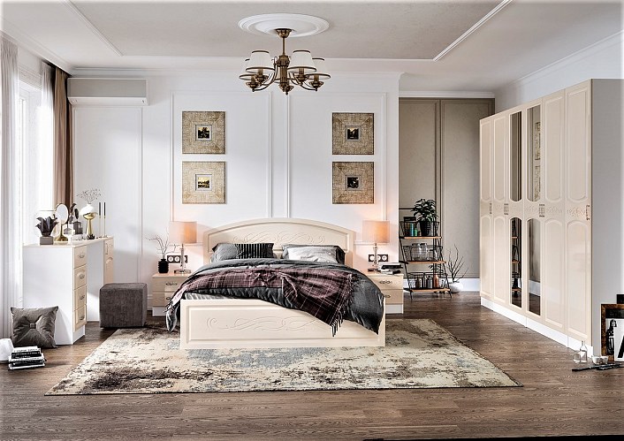 Шкаф 4-х дверный 1,8м штанга/полки"Париж" (МДФ) (Жемчуг) EsandwichИЦВ-ШК-4