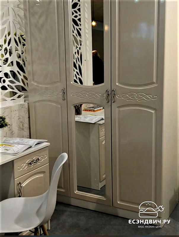 Шкаф 3-х дверный 1,35м штанга/полки"Париж" (МДФ) (Жемчуг) EsandwichИЦВ-ШК-3