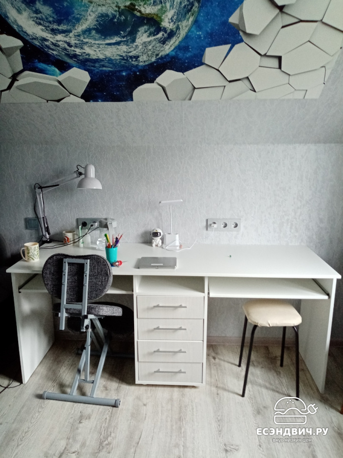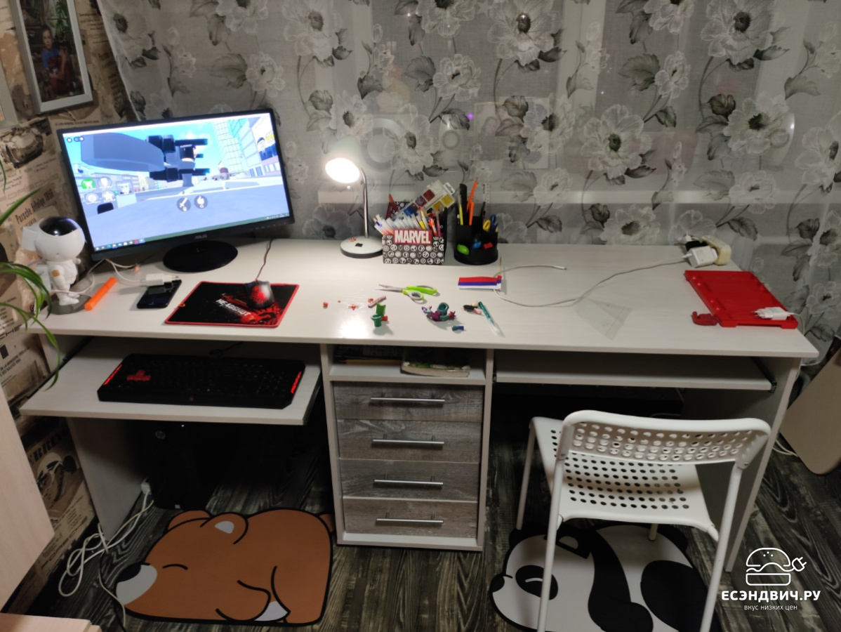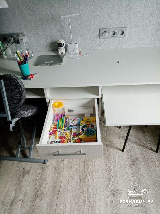 Хороший стол, очень долго ждали когда сделаем комнату ребёнку, чтоб поставить этот стол) Функционал у ящиков позволяет полностью открыть выдвижной ящик, это очень удобно 👍😊 Столешница 60 см, тоже очень хорошо От стенки есть выступ, можно установить настольную лампу 👍
