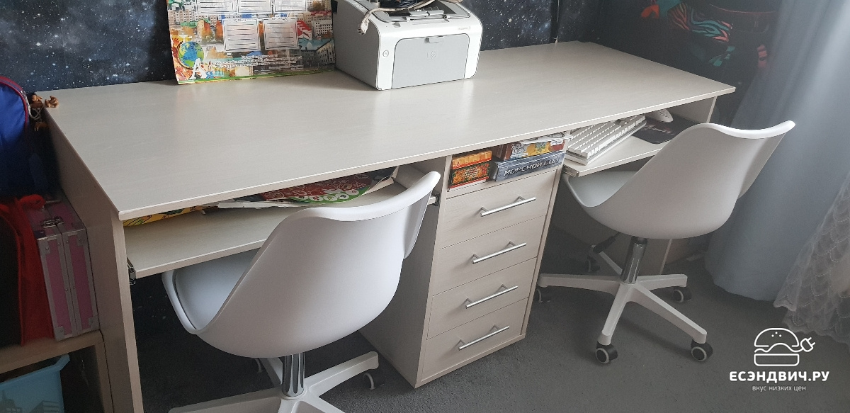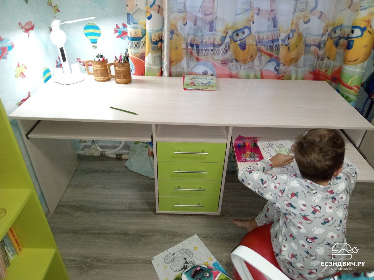 Столик хороший, у каждого ребёнка более чем достаточно рабочего места. Доставили в срок как и было указано изначально. Переживала что много места будет занимать, но прекрасно вписался в комнату. К покупке рекомендую